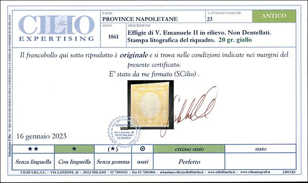 1861 - 20 grana giallo (23) - gomma originale