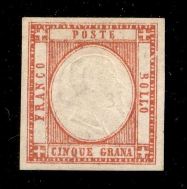 1861 - 5 grana (21) con doppia effigie - gomma originale con traccia di linguella - molto bello e fresco - Diena