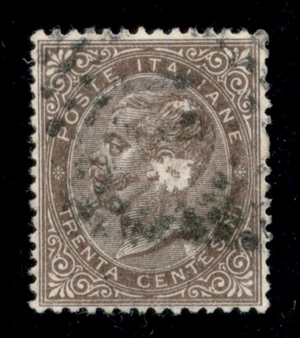 1866 - 30 cent Torino (T19) - bella falla di stampa al centro - usato