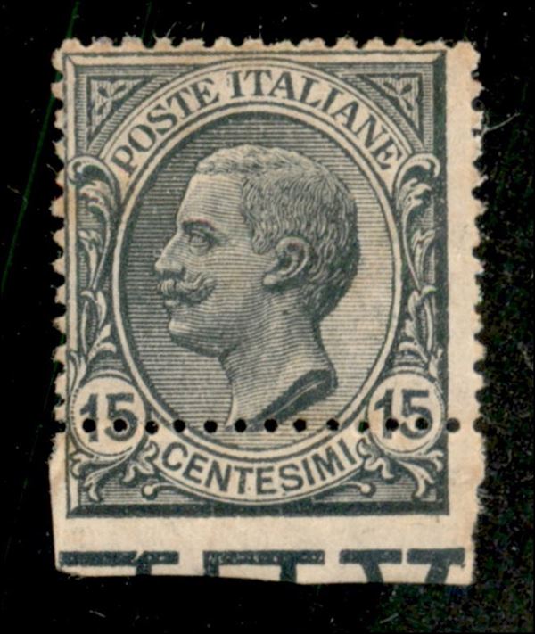 1917/20 - Leoni 15 cent con dentellatura inferiore fortemente spostata in alto - non dentellato in basso con bordo foglio (108fad) nuovo con gomma integra