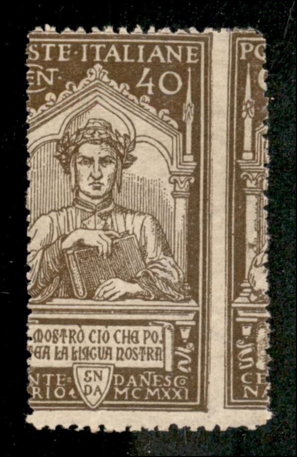 1921 - Dante Alighieri 40 cent con dentellatura verticale fortemente spostata a destra (118ne) - gomma integra