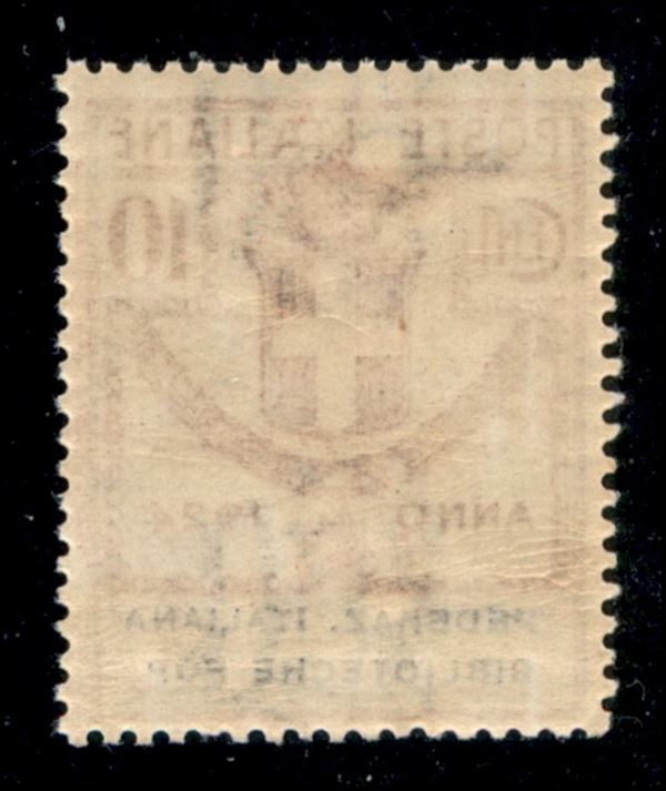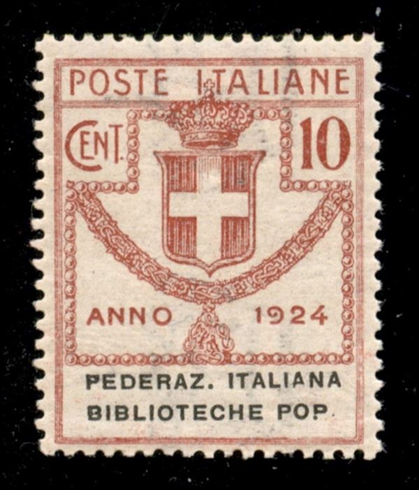 1924 - 10 cent Biblioteche Pop. (34b) senza punto dopo Pop + Pederaz (non catalogato) - gomma integra
