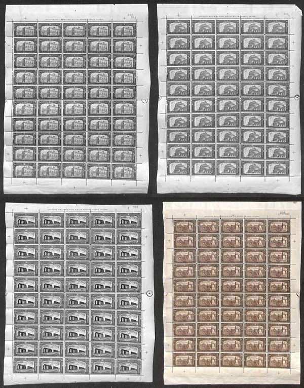1930 - Milizia III (272/275) - serie completa in fogli di 50 - gomma integra - completi dei bordi con iscrizioni e numeri di tavola - insieme non comune in perfette condizioni di conservazione