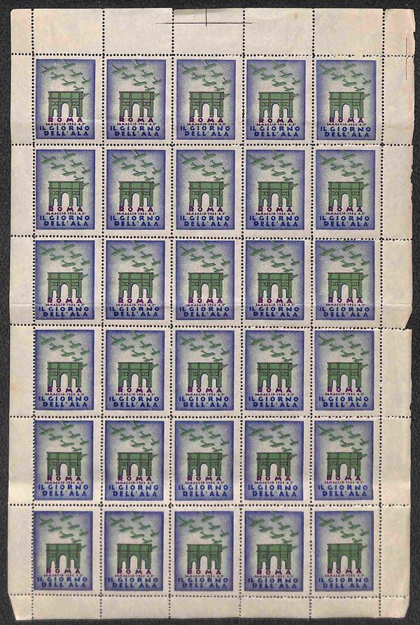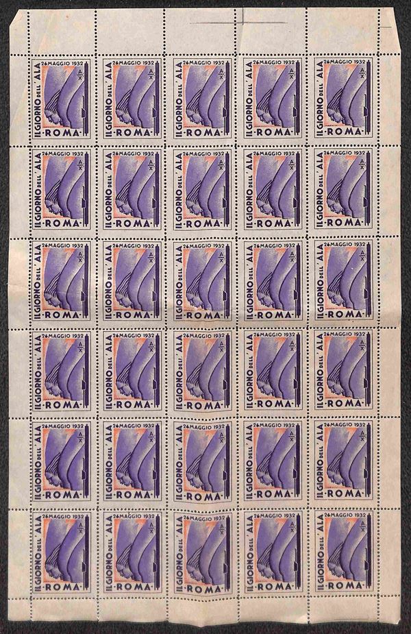 1932 - Il Giorno dell'Ala - le tre etichette commemorative in fogli interi di 30 - gomma integra - insieme molto bello