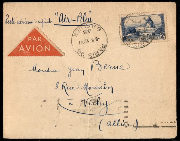 1936 (15 giugno) - AIR BLEU - aerogramma da Parigi a Vichy
