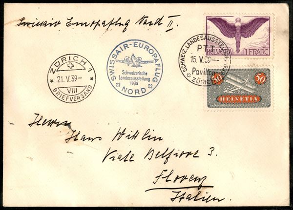 1939 (15/21 maggio) - Europaflug Zurigo Zurigo - Muller 438 - aerogramma per Milano
