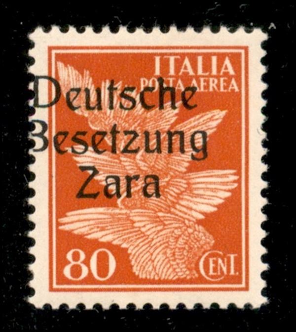 1943 - 80 cent (4/IIbb aerea- secondo tipo) con soprastampa a sinistra - gomma integra