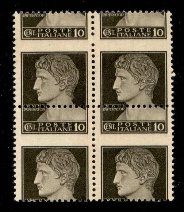 1945 - Quartina del 10 cent (536c) con dentellatura spostata (cent 10 in alto) - gomma integra