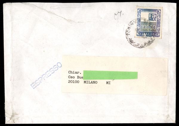 1983 - 1000 lire Alti Valori (1442A) senza la stampa del rosso e "testina" in albino (Spec. 1277Ac) su busta - cert. Manelli