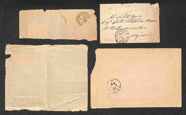 50 cent Umberto (42) su frammento raccomandato + 20 cent su 30 (57) su bustina + due 20 cent su 30 (57) su un frontespizio di busta e una busta - da esaminare
