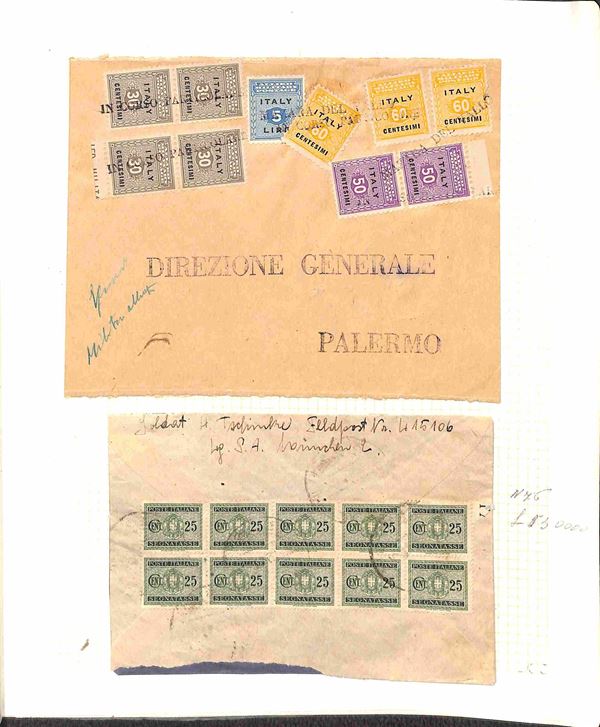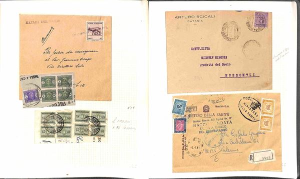 AREA ITALIANA - Insieme di francobolli buste cartoline ri Regno e Repubblica con diverse buone presenze - notate buste affrancate con valori di Occupazione Anglo Americana in Sicilia - merita attento esame