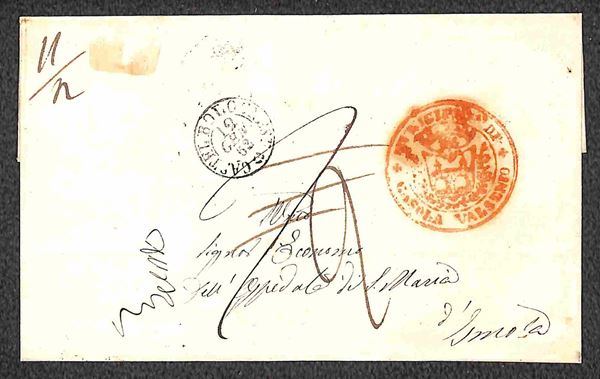 Casola Valsenio - due pieghi - per Imola (12.1.1862) tassato/detassato/tassato e per Tossignano (26.1.62) in franchigia