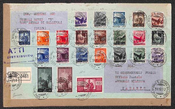 Democratica (543/565) - serie completa - busta raccomandata da Stazione Segnali S. Andrea/Gallipoli a Taranto del 31.12.52 - molto bella - Chiavarello