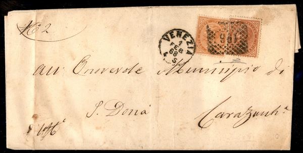 Due 10 cent De La Rue (L17+L17a) di colori diversi - piego da Venezia a Cavazuccherina del 1.2.68 - cert R. Diena