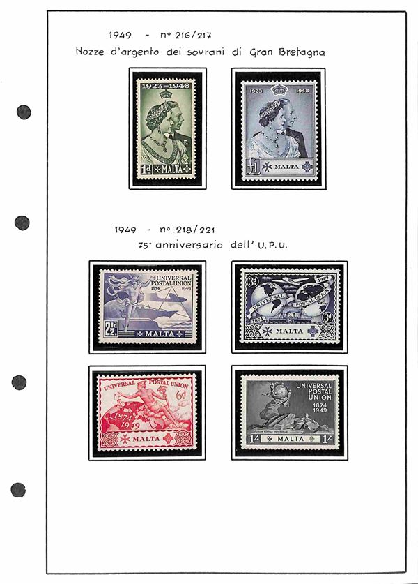MALTA - 1949/1991 - Collezione di valori e serie complete del periodo montati in 30 cartoncini artigianali - gomma integra - ottima qualità