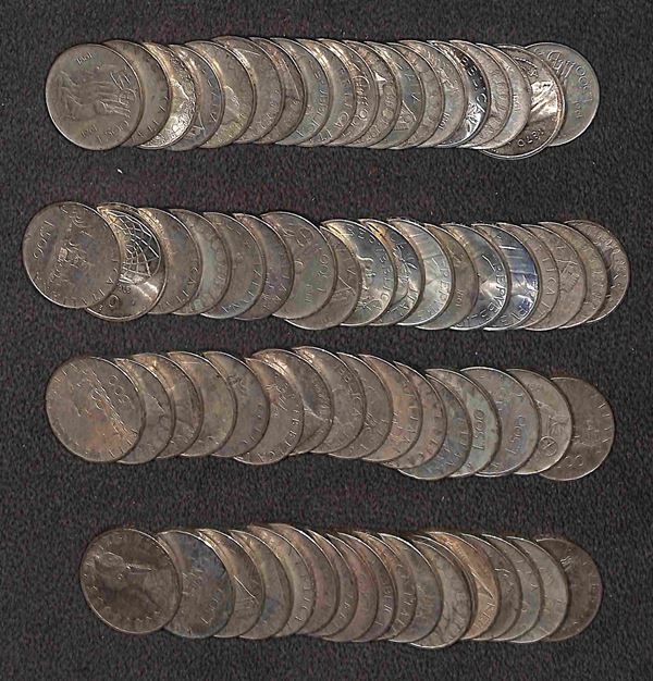 MONETE - Lotto di 72 monete d'argento di settanta 500 lire (Caravelle e Bighe) + due 1000 lire (Roma Capitale) - totale gr. 797,42