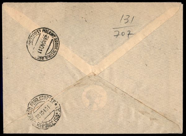 Mostra Triennale d'Oltremare - aerogramma raccomandato affrancato con 2 + 0,75 lire (170) + serie Posta Aerea (41/44) da Tripoli a Milano del 25.10.40 - non comune - Raybaudi