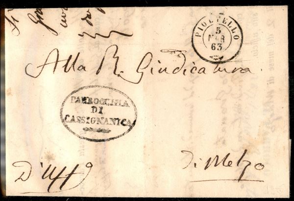 Pioltello (P.ti 6) - lettera in franchigia per Melzo del 5.3.63