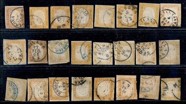 1858/1863 - 80 cent (17/17D) - insieme di 30 pezzi usati ottimi per studio delle diverse tinte - generalmente di seconda scelta - merita esame