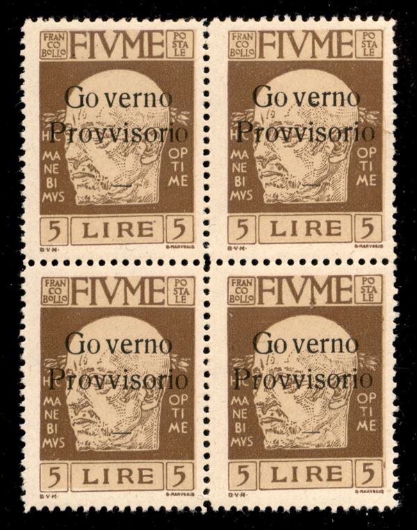 1921 - 5 lire D'Annunzio (162) - quartina - gomma integra (1500+)