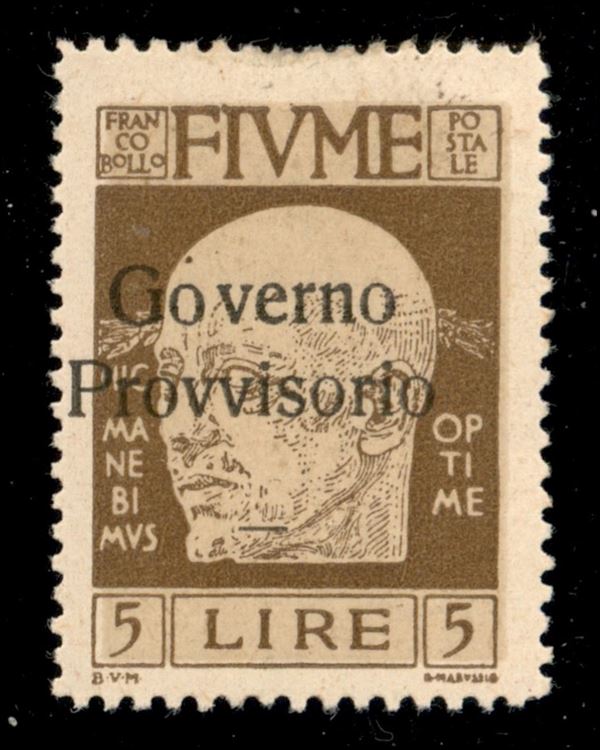1921 - 5 lire Governo Provvisorio (162 ob) - soprastampa a sinistra - gomma originale (500)