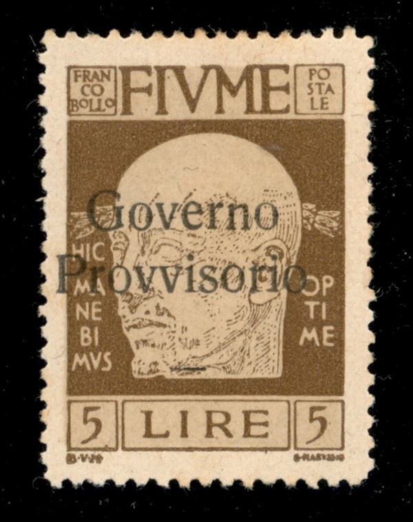 1921 - 5 lire Governo Provvisorio (162 zb) - ov vicine - gomma originale (700)