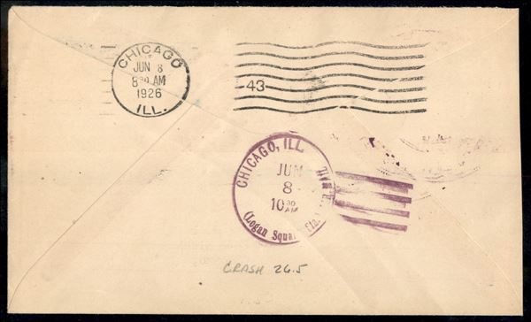 1926 (7 giugno) - Mnneapolis Chicago - aerogramma del volo