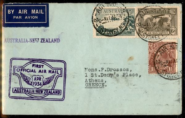 1934 (10 aprile) - Australia Nuova Zelanda - Muller 104 - aerogramma per Atene