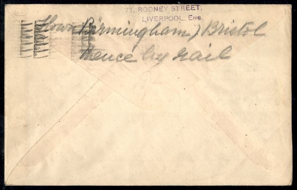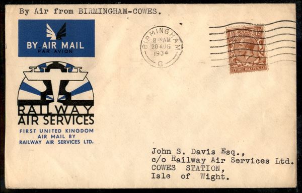 1934 (20 agosto) - Birmingham Cowes - Muller 258 - aerogramma del volo