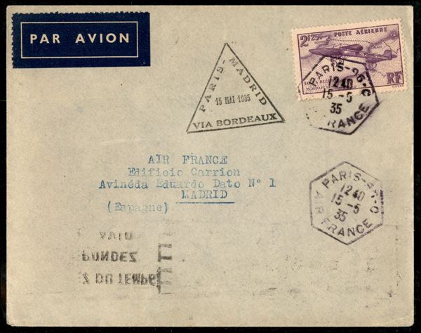1935 (15 maggio) - Parigi Madrid - Muller 351 - aerogramma del volo