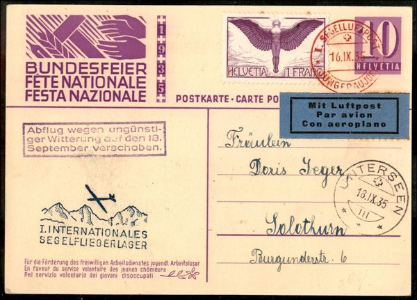 1935 (16 settembre) - Jungfrau Unterseen - Muller 390 - cartolina postale del volo