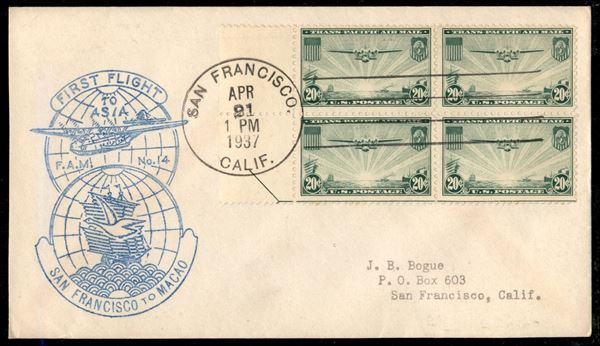 1937 (21 aprile) - San Francisco Macao - Muller 418 - aerogramma del volo