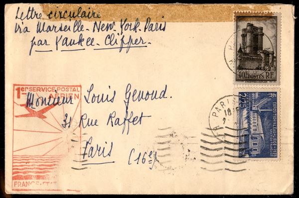 1939 (25 maggio) - Marsiglia New York - Muller 451 - aerogramma da Parigi