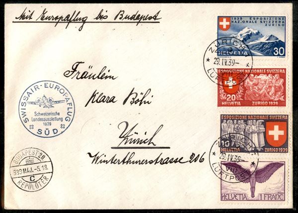 1939 (29 aprile) - Zurigo Budapest - Muller 425 - aerogramma del volo