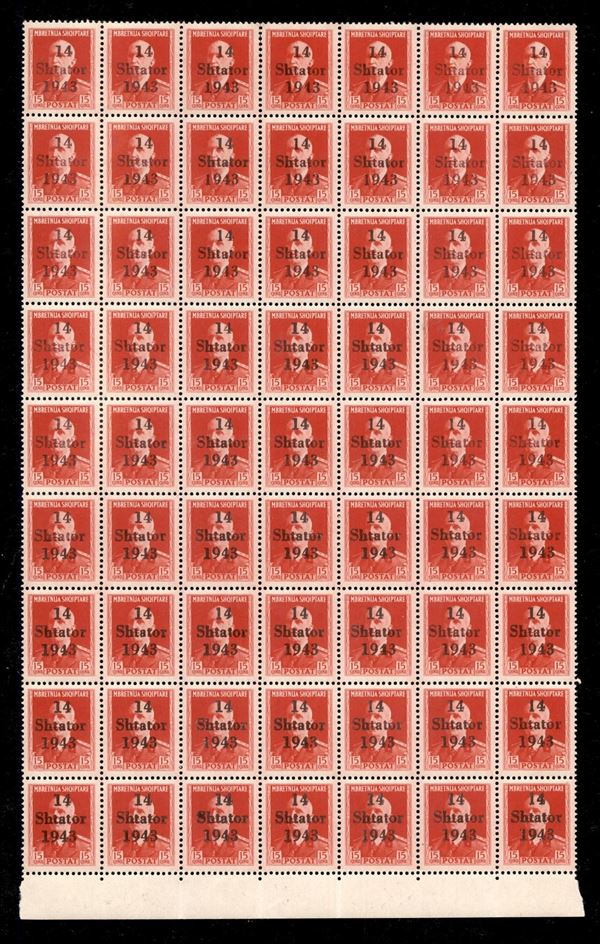 1943 - 15 qind (6) - blocco di 63 bordo foglio - gomma integra