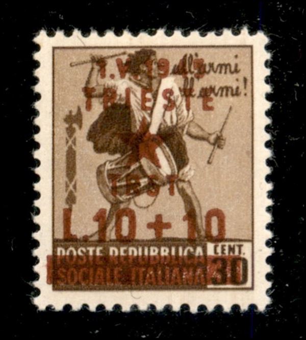 1945 - 10 + 10 lire su 30 cent (13 - varietà) - soprastampa bruna - gomma integra - non catalogato