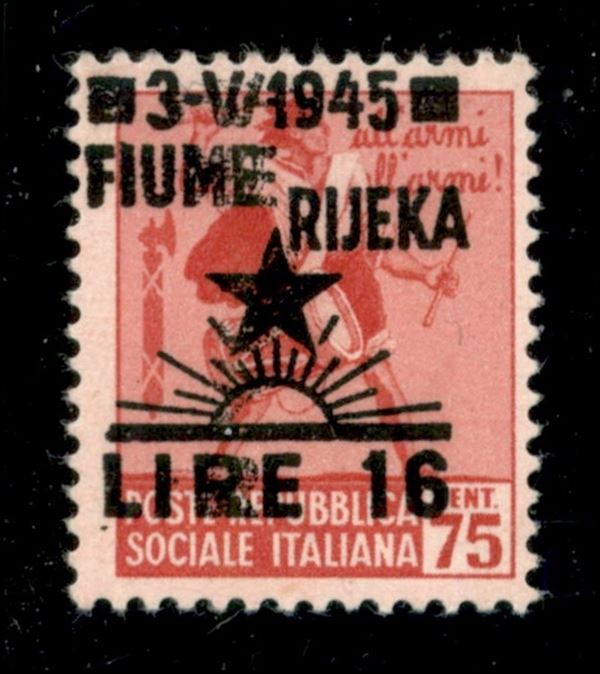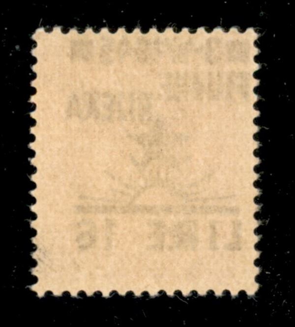 1945 - 16 lire su 75 cent Tamburino (21 varietà) - soprastampa in alto a sinistra + parziale doppia stampa - gomma integra - da esaminare