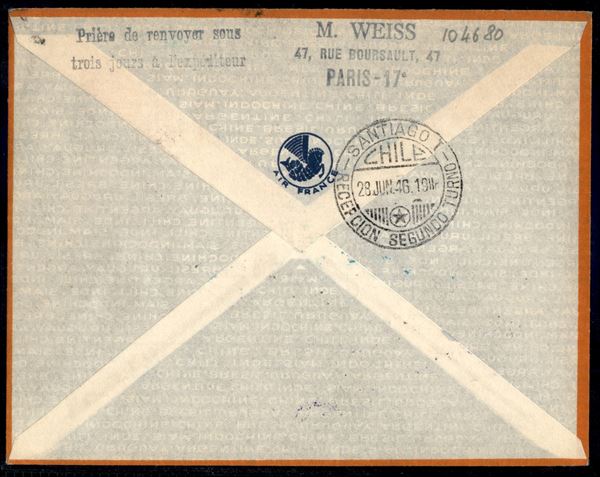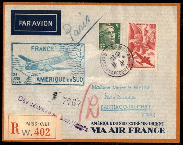 1946 (23 giugno) - Francia America del Sud - Muller 539 - aerogramma raccomandato da Parigi a Santiago del Cile