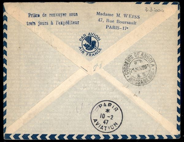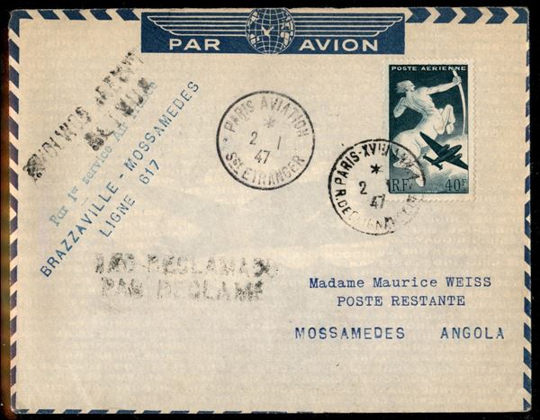 1947 (2 gennaio) - Parigi Brazzaville Mossamedes - Ligne 617 Air France - aerogramma del volo