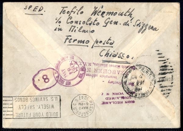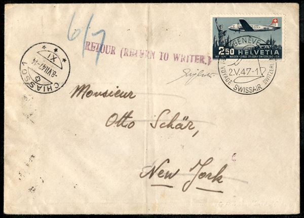 1947 (2 maggio) - Ginevra New York Washington - Muller 522 - aerogramma reso al mittente a Chiasso
