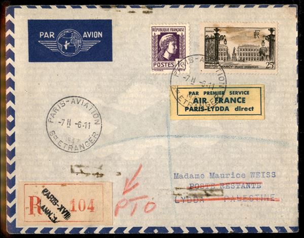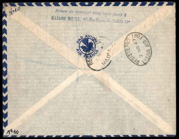 1947 (6 novembre) - Parigi Lydda - Muller 631 - aerogramma del volo