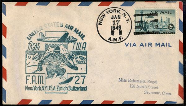 1949 (17 gennaio) - New York Zurigo - Muller 652 - aerogramma del volo