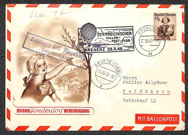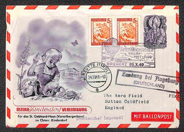 1949 (23 ottobre) - Bregenz Ballonpost - sette aerogrammi