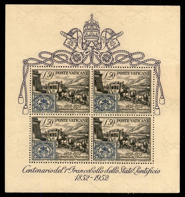 1952 - Foglietto centenario dei francobolli (1) - gomma integra
