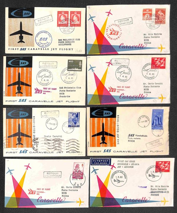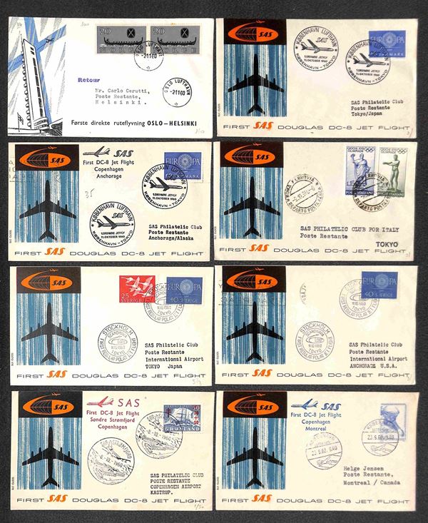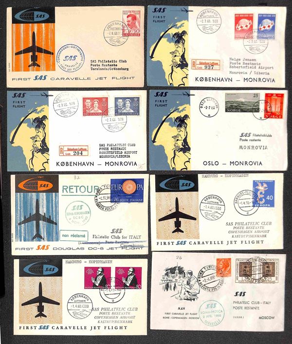 1960 - Primi Voli SAS - 59 aerogrammi di voli diversi del periodo
