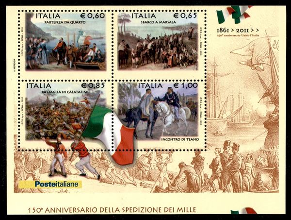 2010 - Foglietto Spedizione dei Mille (63 - Specializzato 63Ea) - taglio spostato in basso - gomma integra