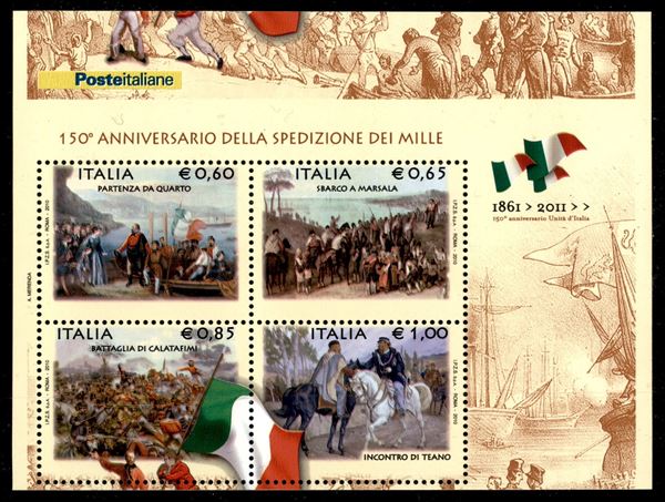 2010 - Foglietto Spedizione dei Mille (63 - Specializzato 63Ea) - taglio spostato in alto - gomma integra