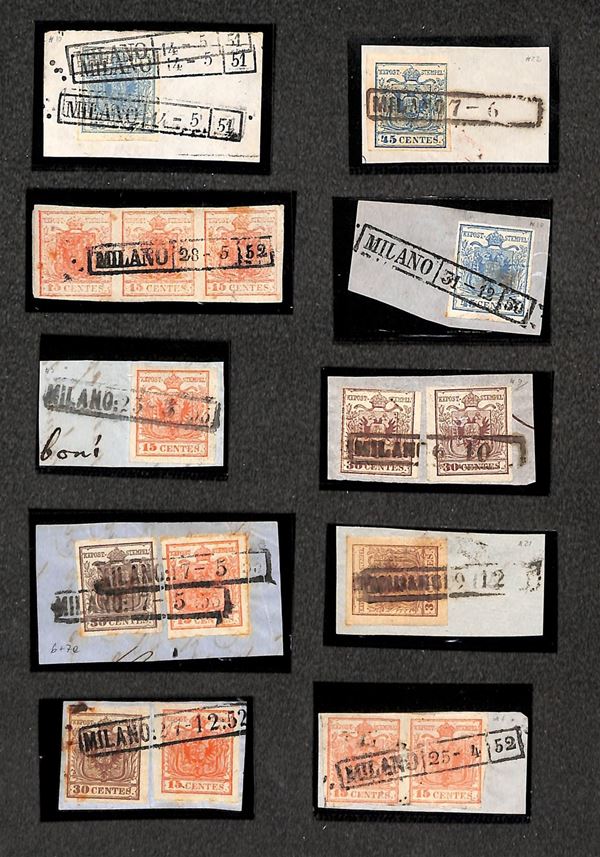Milano R50/R53 + Rd - Dieci frammenti con affrancature del periodo - notata una striscia di tre del 15 cent (5) - bell'insieme misto - da esaminare