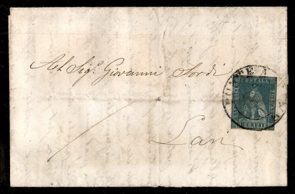 Ponte a Sieve (Pti 11) - 5 crazie (5e) su lettera per Lari del 28.1.57 - piega orizzontale al centro