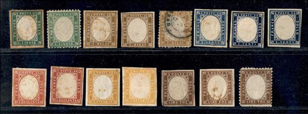 Prove di stampa/resti di stamperia - Piccolo insieme di 15 singoli + una quartina + un blocco di sei - presenti effigi capovolte + senza effigi + doppia stampa - gomma originale e senza gomma - da esaminare